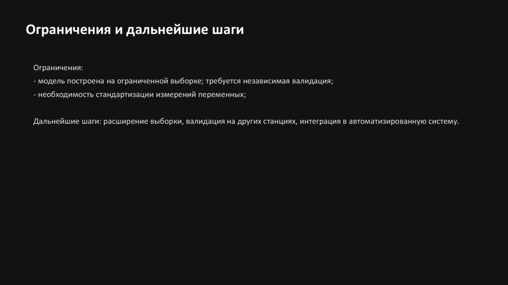 Дальнейшие шаги: расширение выборки, валидация на других станциях, интеграция в автоматизированную систему.