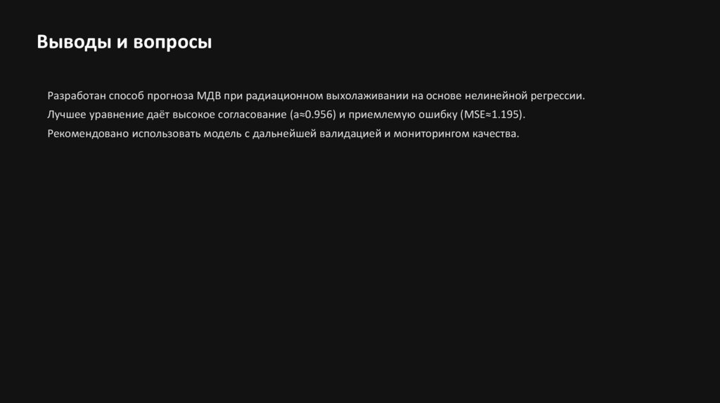 Выводы и вопросыРазработан способ прогноза МДВ при радиационном выхолаживании на основе нелинейной регрессии.