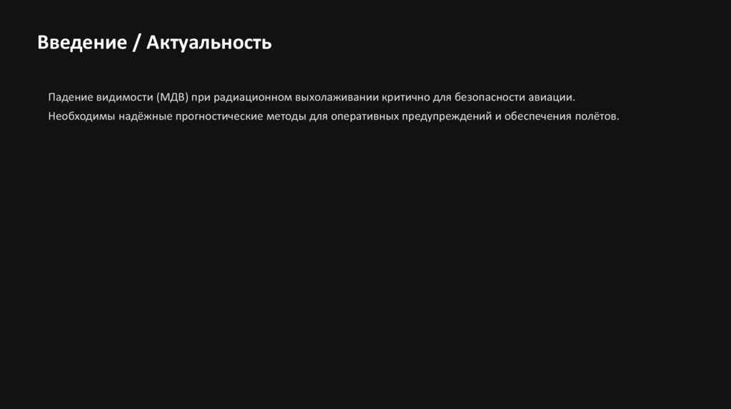 Введение / АктуальностьПадение видимости (МДВ) при радиационном выхолаживании критично для безопасности авиации.