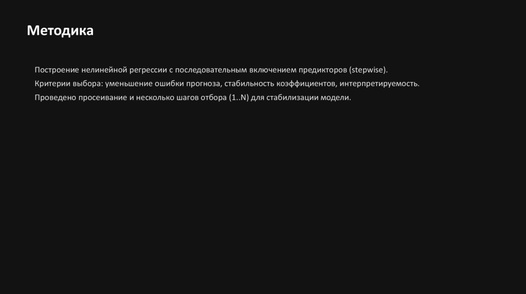 МетодикаПостроение нелинейной регрессии с последовательным включением предикторов (stepwise).