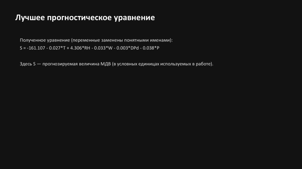 Лучшее прогностическое уравнениеПолученное уравнение (переменные заменены понятными именами):