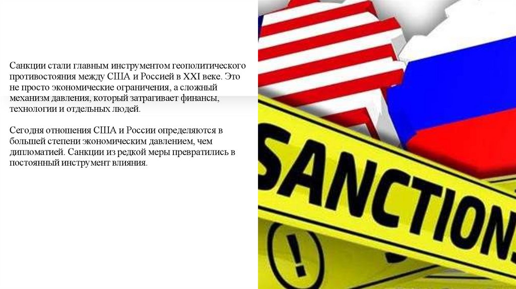 Санкции стали главным инструментом геополитическогопротивостояния между США и Россией в XXI веке. Это