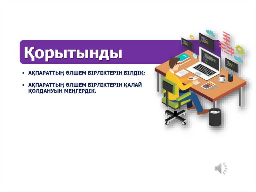 ҚорытындыАҚПАРАТТЫҢ ӨЛШЕМ БІРЛІКТЕРІН БІЛДІК;