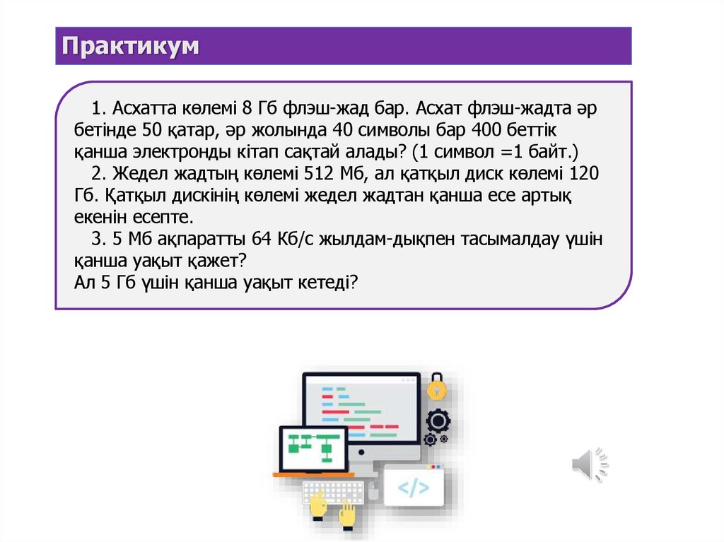 Практикум1. Асхатта көлемі 8 Гб флэш-жад бар. Асхат флэш-жадта әр