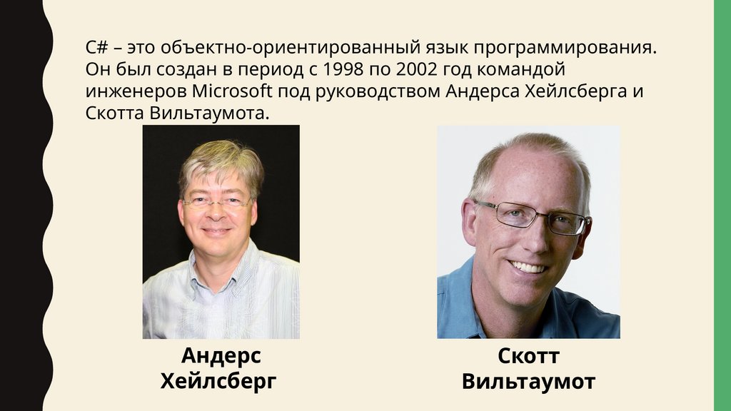 С# – это объектно-ориентированный язык программирования.Он был создан в период с 1998 по 2002 год командой