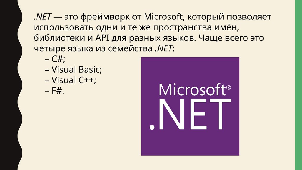 .NET — это фреймворк от Microsoft, который позволяетиспользовать одни и те же пространства имён,