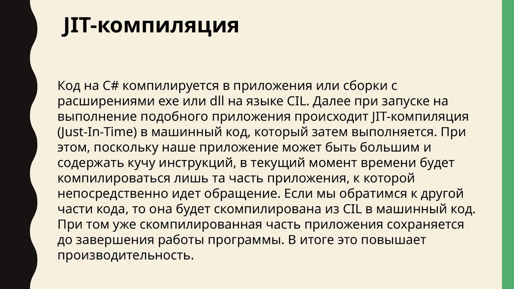 JIT-компиляцияКод на C# компилируется в приложения или сборки с