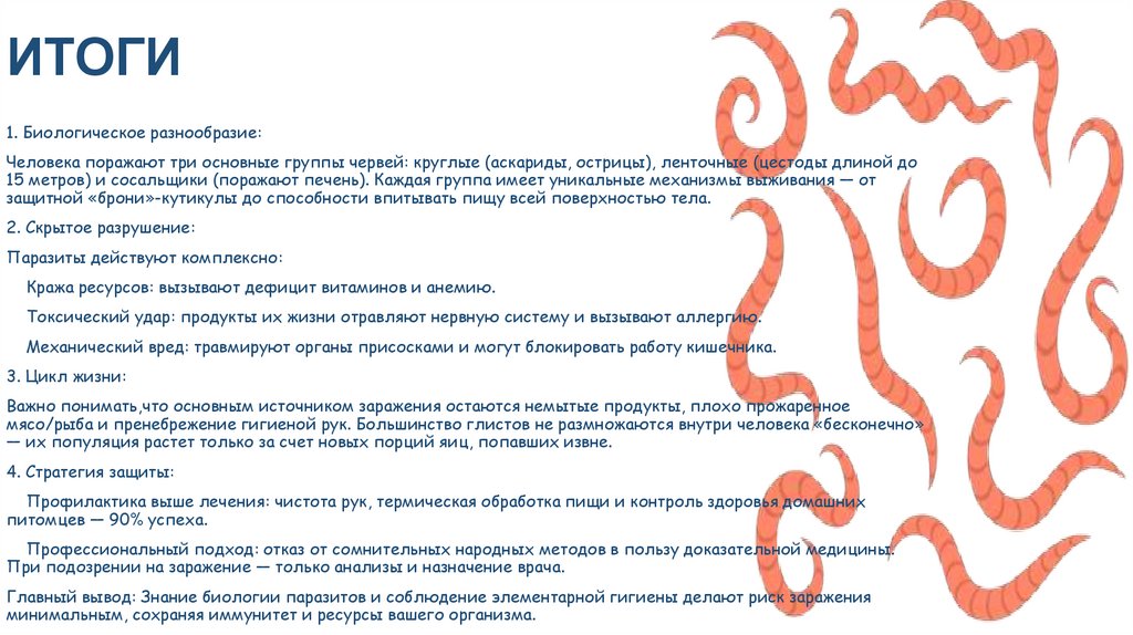 Главный вывод: Знание биологии паразитов и соблюдение элементарной гигиены делают риск заражения