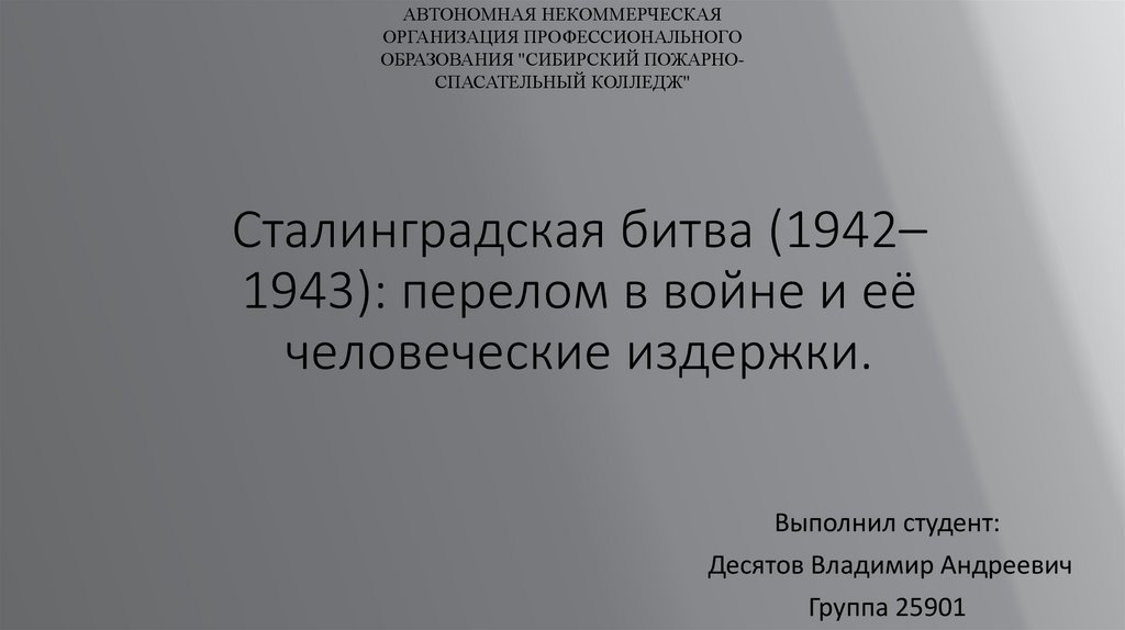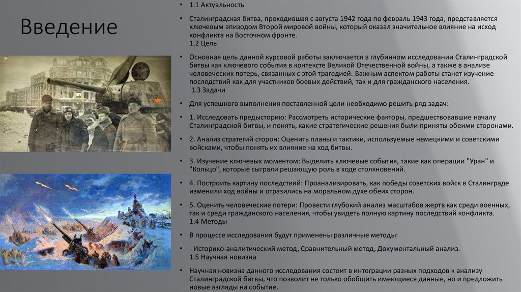 • Основная цель данной курсовой работы заключается в глубинном исследовании Сталинградской