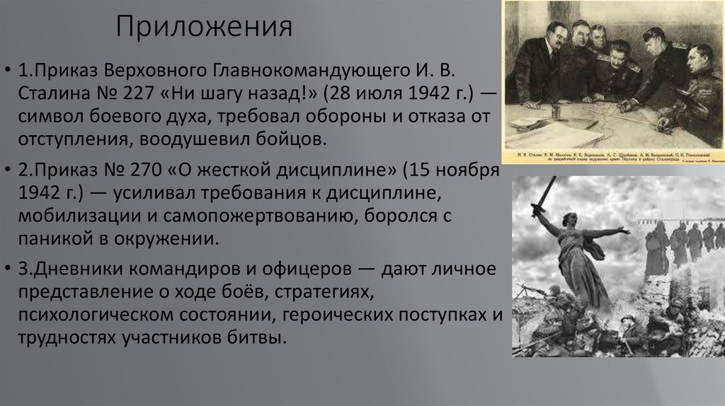 Приложения• 1.Приказ Верховного Главнокомандующего И. В.