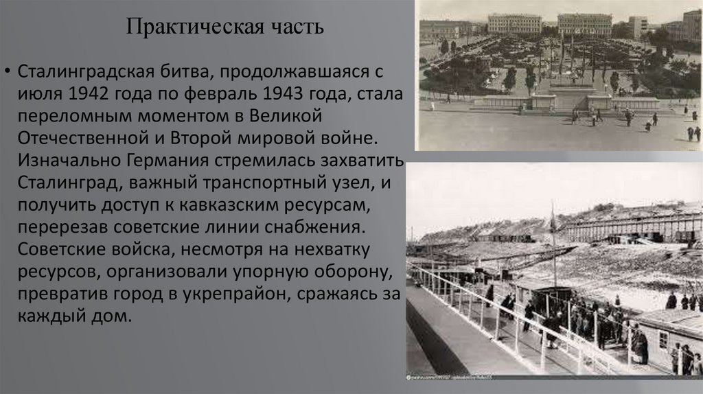 Практическая часть• Сталинградская битва, продолжавшаяся с