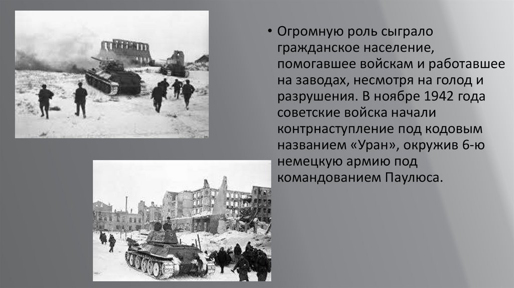 • Операция «Уран» стала успешным контрнаступлением, окружив и уничтожив крупные немецкие