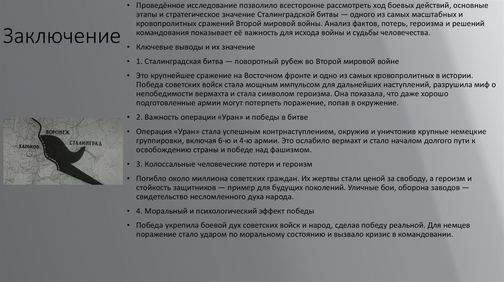 Заключение• Проведённое исследование позволило всесторонне рассмотреть ход боевых действий, основные