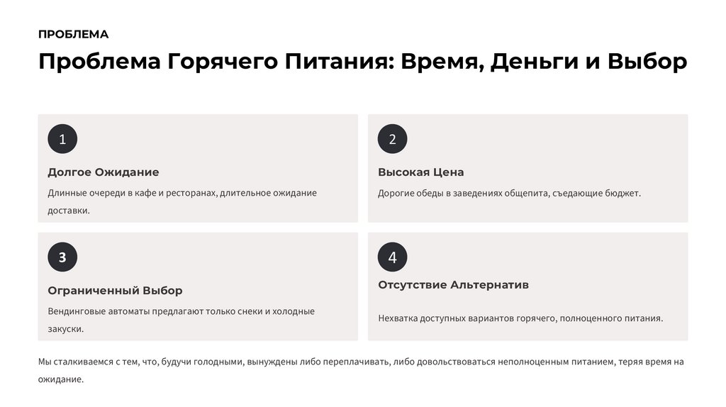 ПРОБЛЕМАПроблема Горячего Питания: Время, Деньги и Выбор