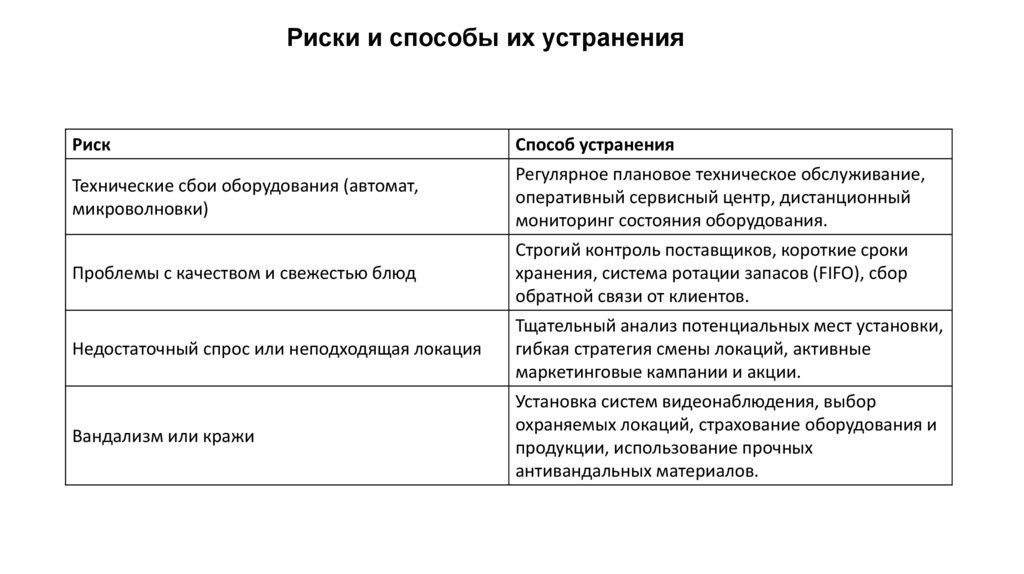 Риски и способы их устраненияРиск