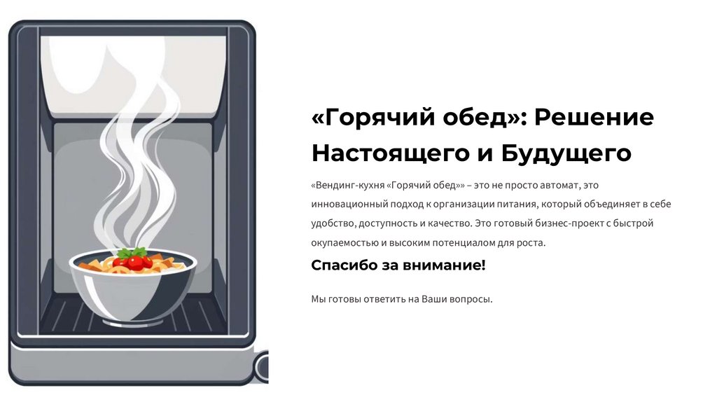 Инновационное решение для быстрого, доступного и горячего питания.