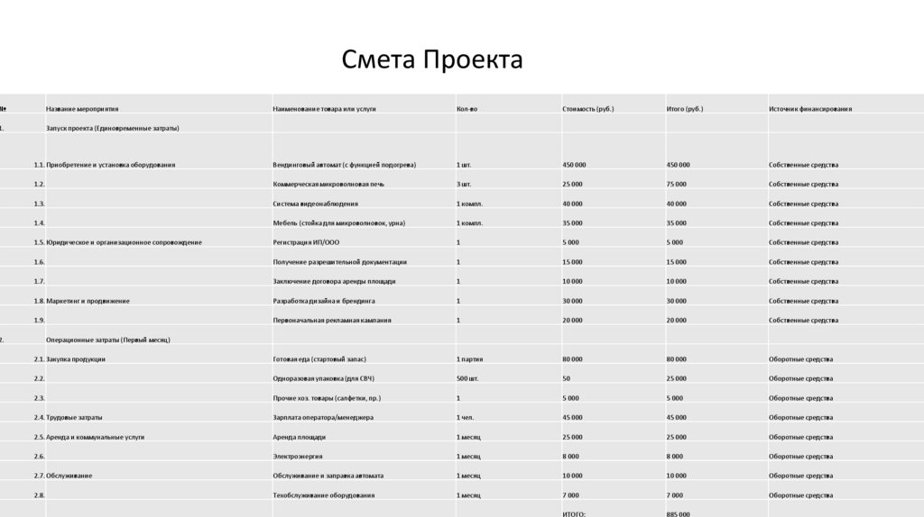 Смета Проекта№