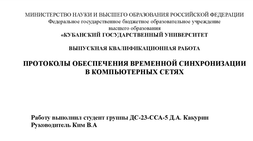 1. МИНИСТЕРСТВО НАУКИ И ВЫСШЕГО ОБРАЗОВАНИЯ РОССИЙСКОЙ ФЕДЕРАЦИИ Федеральное государственное бюджетное образовательное учреждение