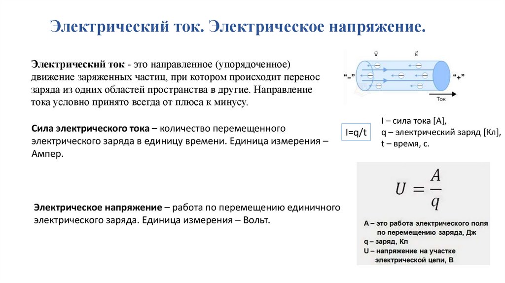 Электрический ток. Электрическое напряжение.Электрический ток - это направленное (упорядоченное)