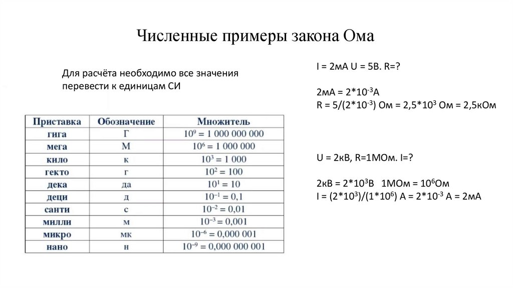Численные примеры закона ОмаДля расчёта необходимо все значения