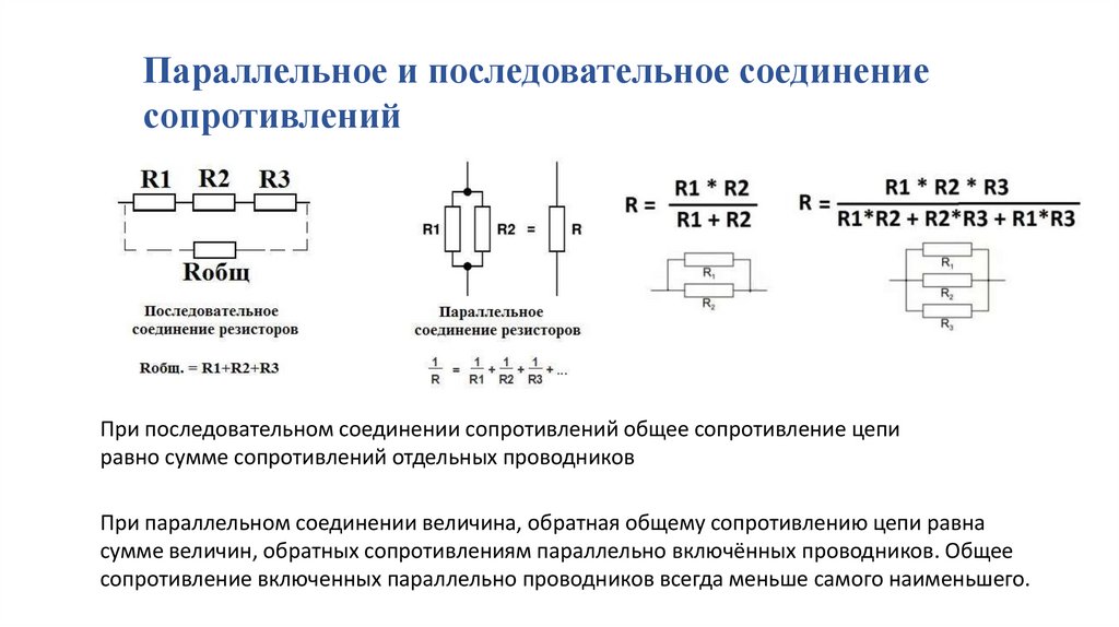 сумме величин, обратных сопротивлениям параллельно включённых проводников. Общее