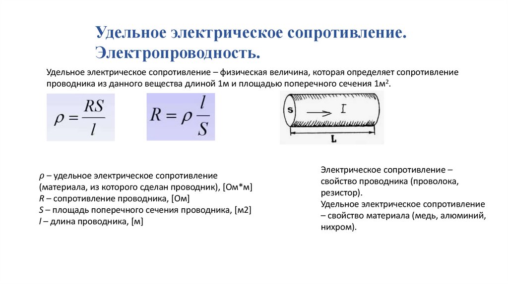 Удельное электрическое сопротивление – физическая величина, которая определяет сопротивление