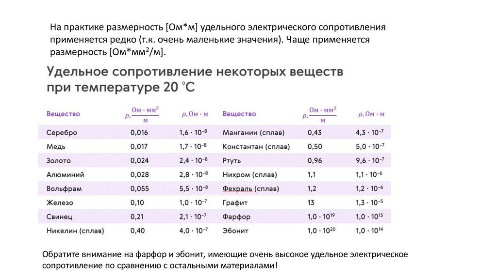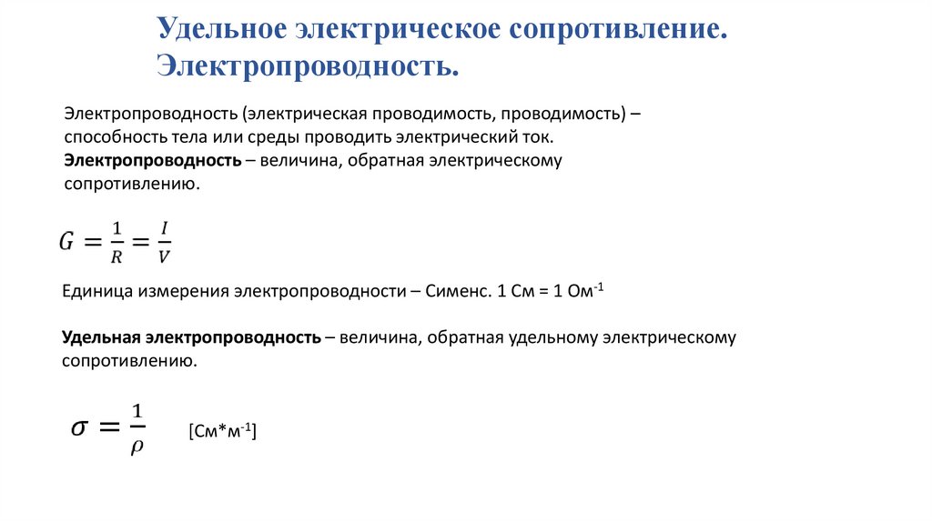 проводника из данного вещества длиной 1м и площадью поперечного сечения 1м2.