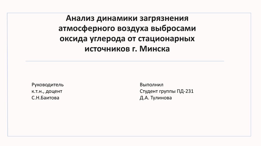 выбросов оксида углерода в атмосферу в г. Минске. Это связано с внедрением