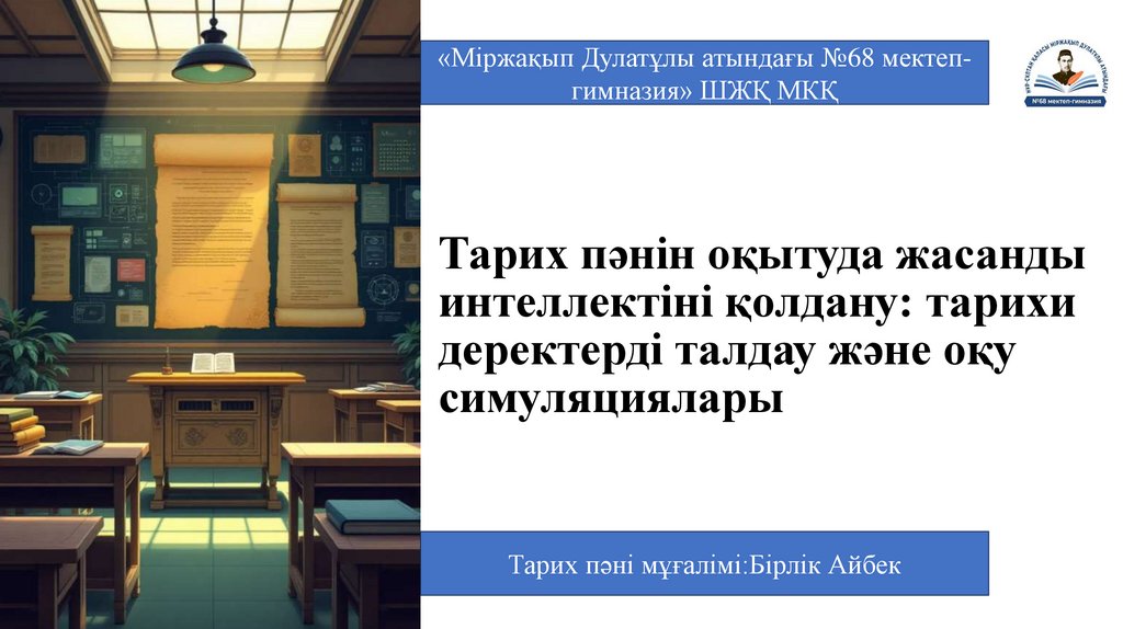 «Міржақып Дулатұлы атындағы №68 мектепгимназия» ШЖҚ МКҚТарих пәнін оқытуда жасанды