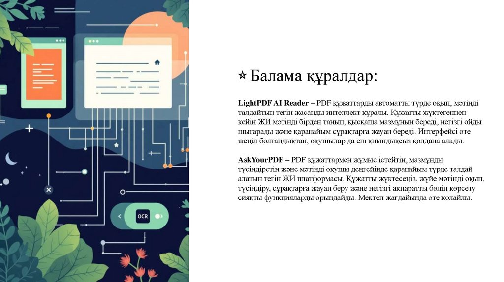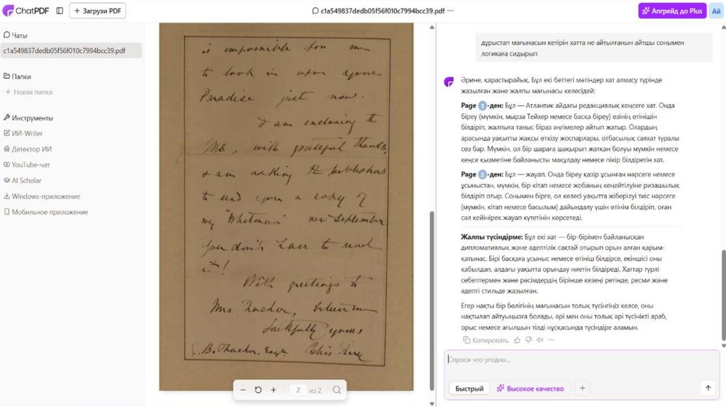 мазмұнын түсіндіретін тегін ЖИ құралы. Платформаға құжатты