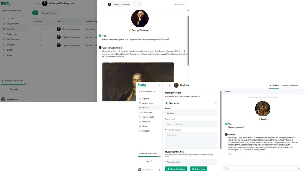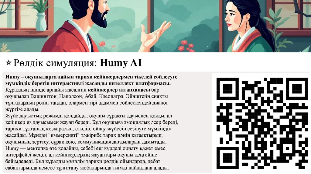 ⭐Рөлдік симуляция: Humy AIHumy – оқушыларға дайын тарихи кейіпкерлермен тікелей сөйлесуге