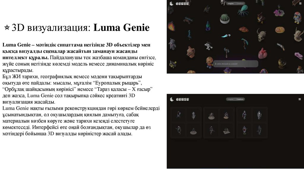⭐3D визуализация: Luma GenieLuma Genie – мәтіндік сипаттама негізінде 3D объектілер мен