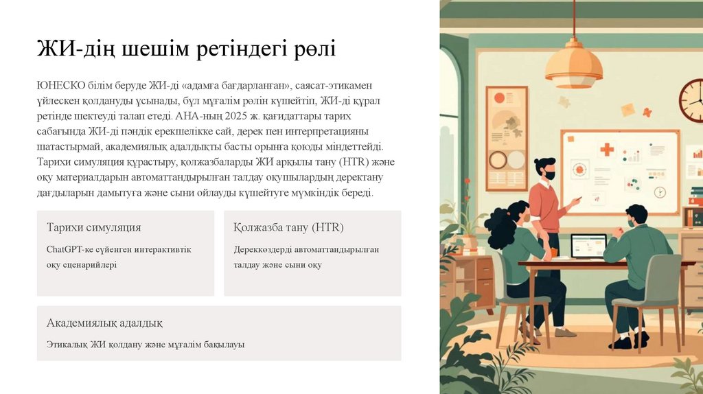 ЖИ-дің шешім ретіндегі рөліЮНЕСКО білім беруде ЖИ-ді «адамға бағдарланған», саясат-этикамен