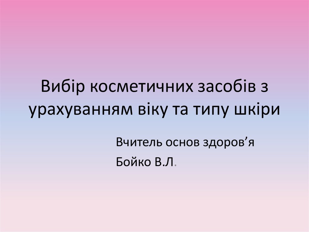 1. Вибір косметичних засобів з урахуванням віку та типу шкіри