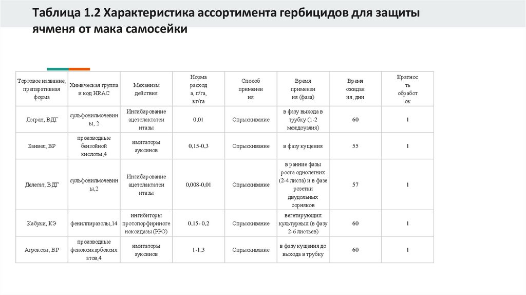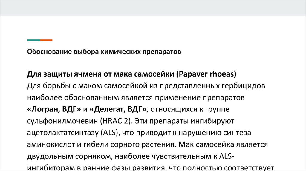 Обоснование выбора химических препаратовДля защиты ячменя от мака самосейки (Papaver rhoeas)
