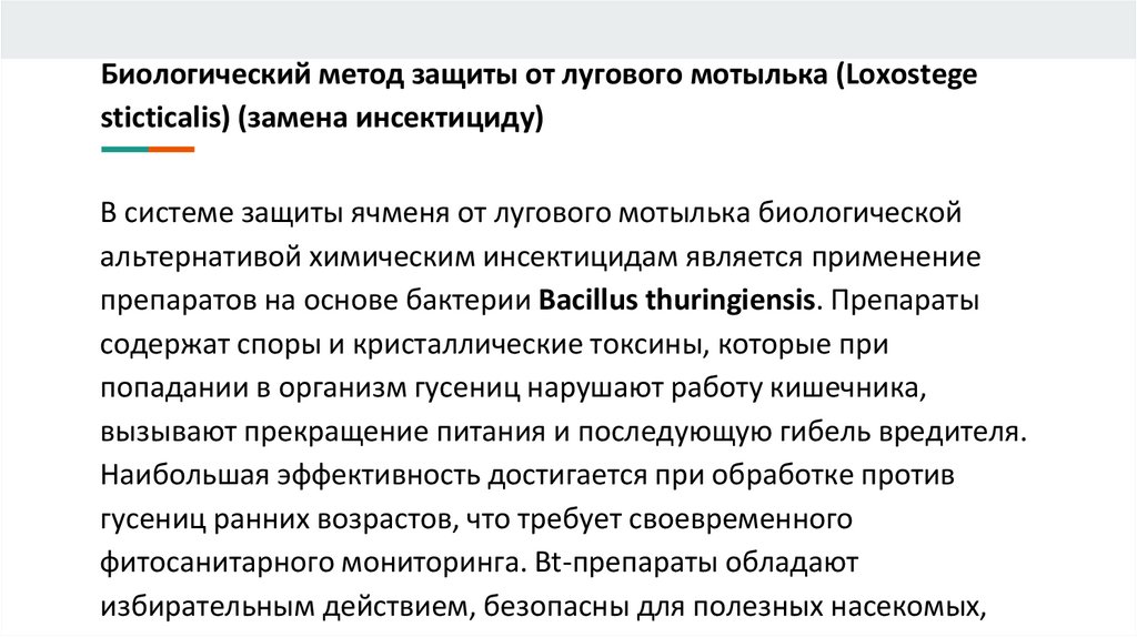 препаратов на основе бактерии Bacillus thuringiensis. Препараты