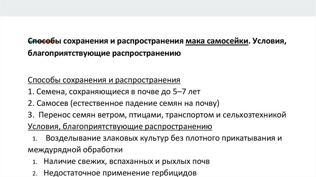 Способы сохранения и распространения мака самосейки. Условия,благоприятствующие распространению