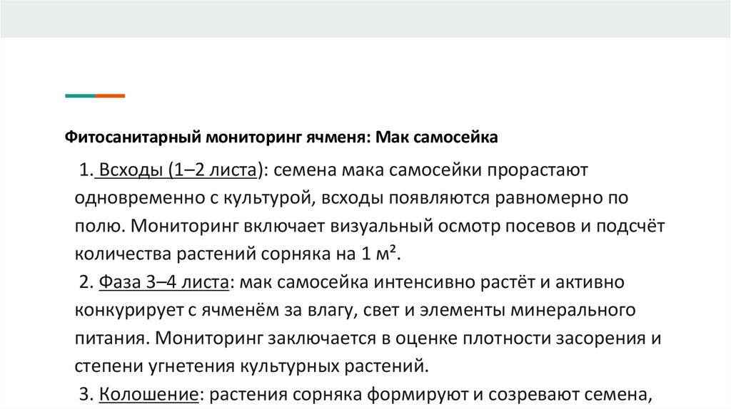 Фитосанитарный мониторинг ячменя: Мак самосейка1. Всходы (1–2 листа): семена мака самосейки прорастают