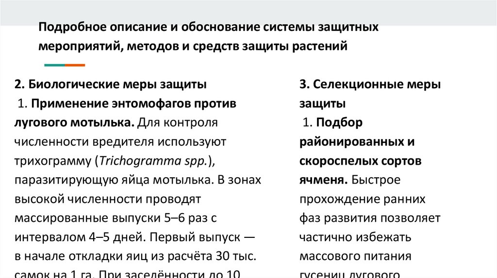 Подробное описание и обоснование системы защитныхмероприятий, методов и средств защиты растений
