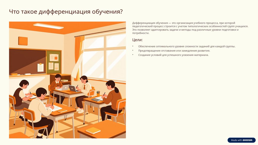 Что такое дифференциация обучения?Дифференциация обучения — это организация учебного процесса, при которой