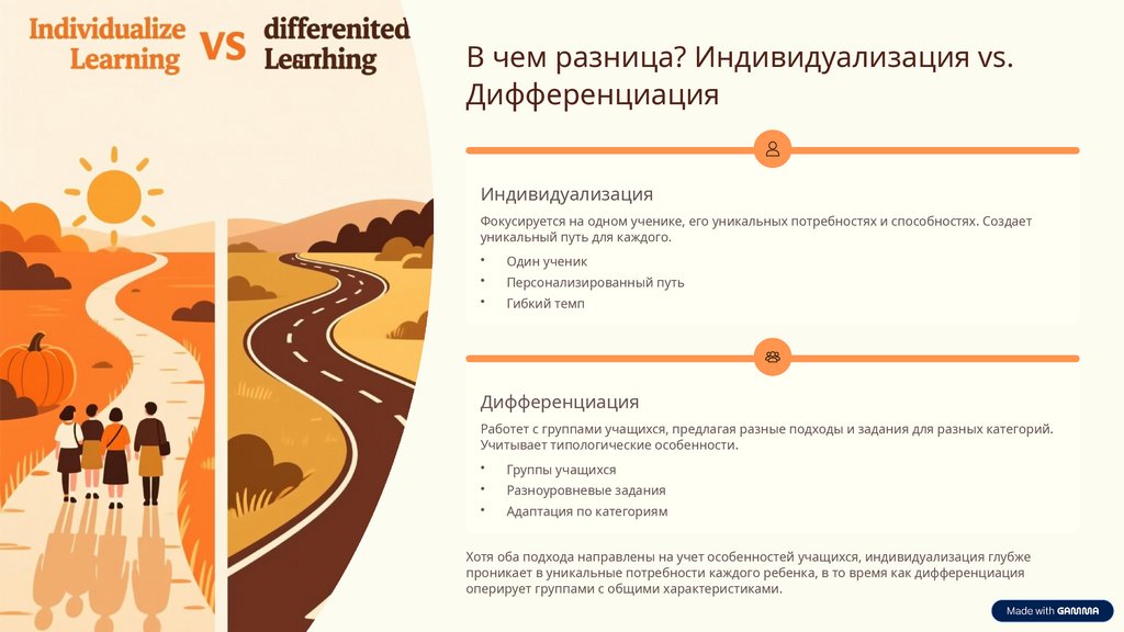 Хотя оба подхода направлены на учет особенностей учащихся, индивидуализация глубже