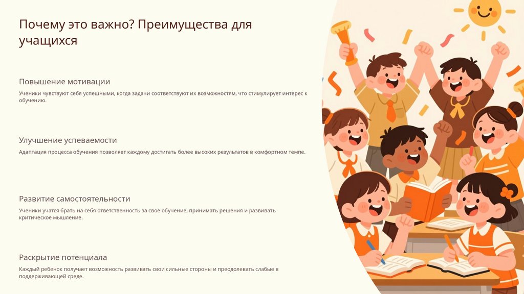 Адаптация процесса обучения позволяет каждому достигать более высоких результатов в комфортном темпе.