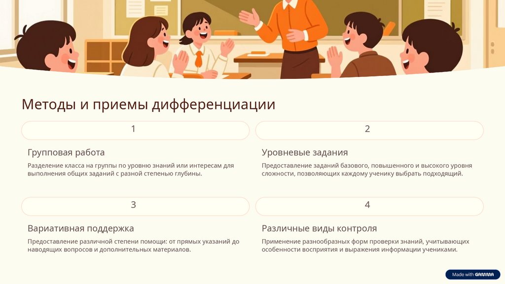 Это позволяет адаптировать задачи и методы под различные уровни подготовки и