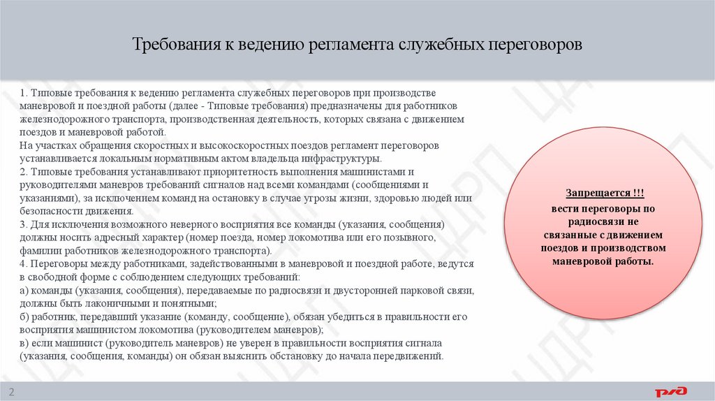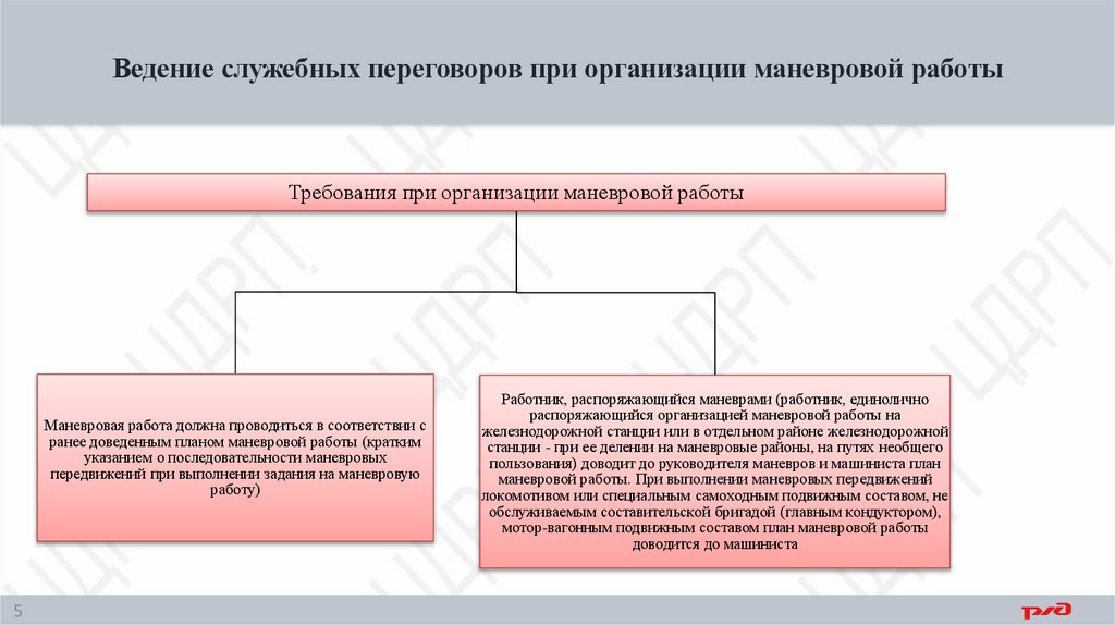 Ведение служебных переговоров при организации маневровой работыТребования при организации маневровой работы