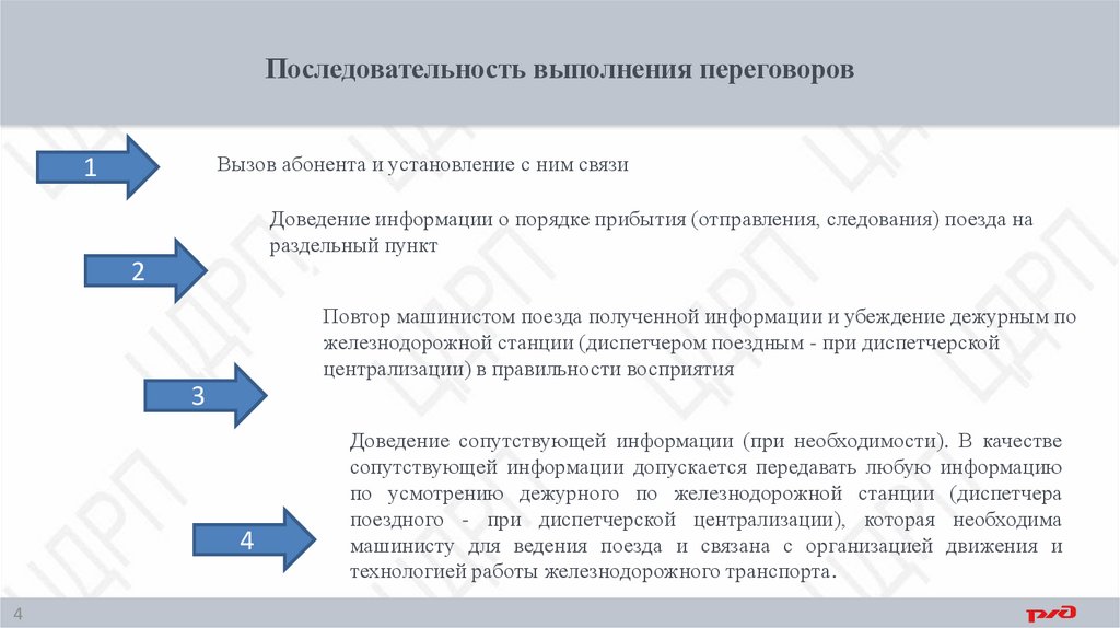 4. Переговоры между работниками, задействованными в маневровой и поездной работе, ведутся