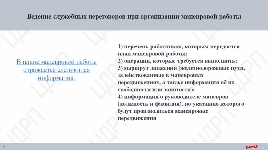 Ведение служебных переговоров при организации маневровой работыВ плане маневровой работы