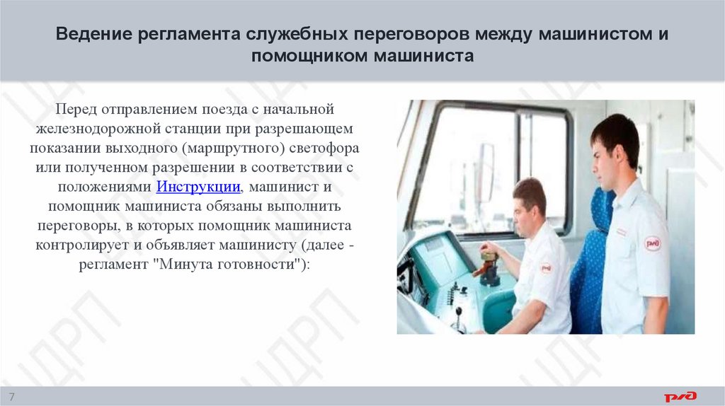 Ведение регламента служебных переговоров между машинистом ипомощником машиниста