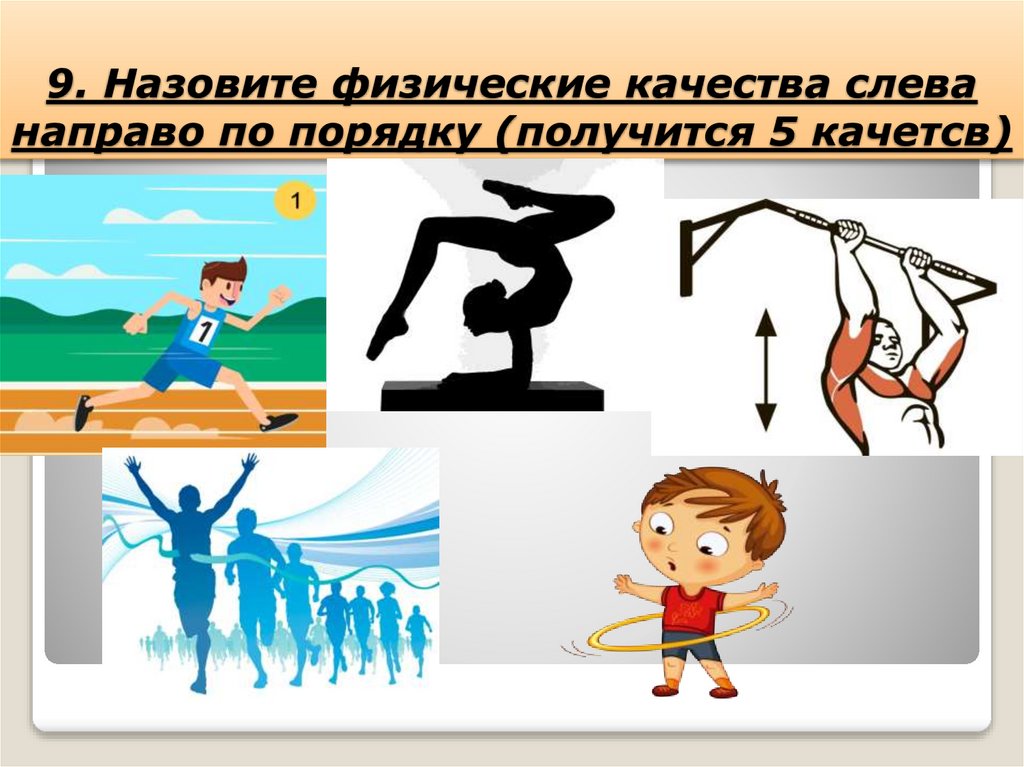 9. Назовите физические качества слеванаправо по порядку (получится 5 качетсв)