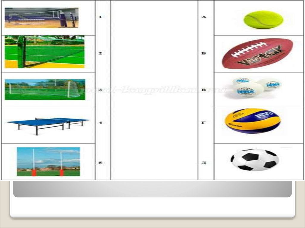 8. Соотнесите виды спорта и мячи,которыми играют в данных видах