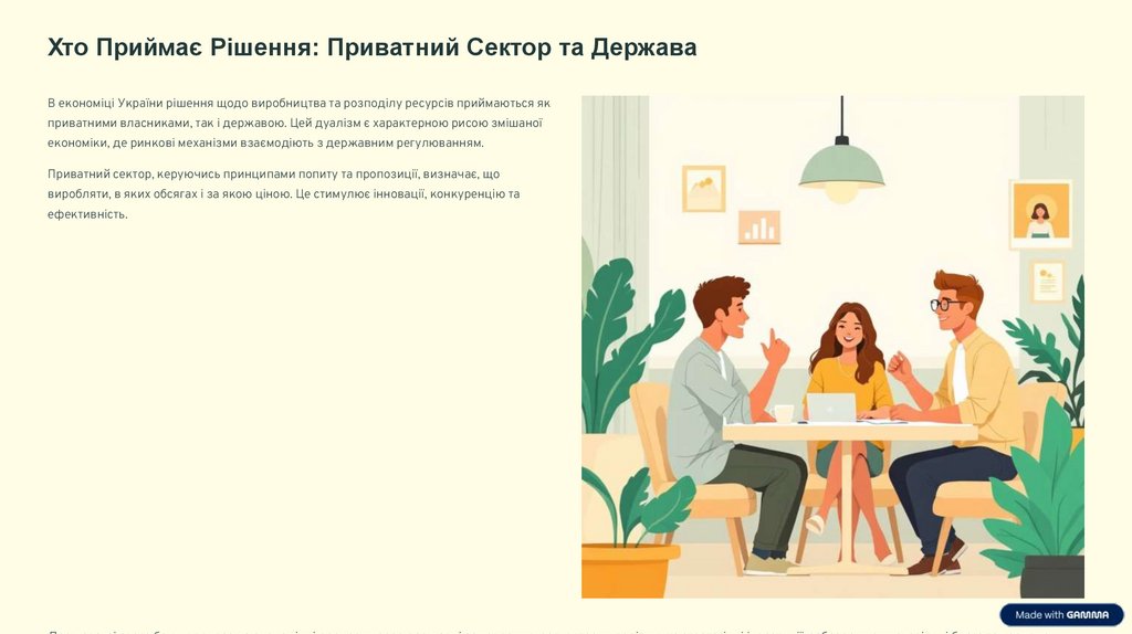 Хто Приймає Рішення: Приватний Сектор та ДержаваВ економіці України рішення щодо виробництва та розподілу ресурсів приймаються як